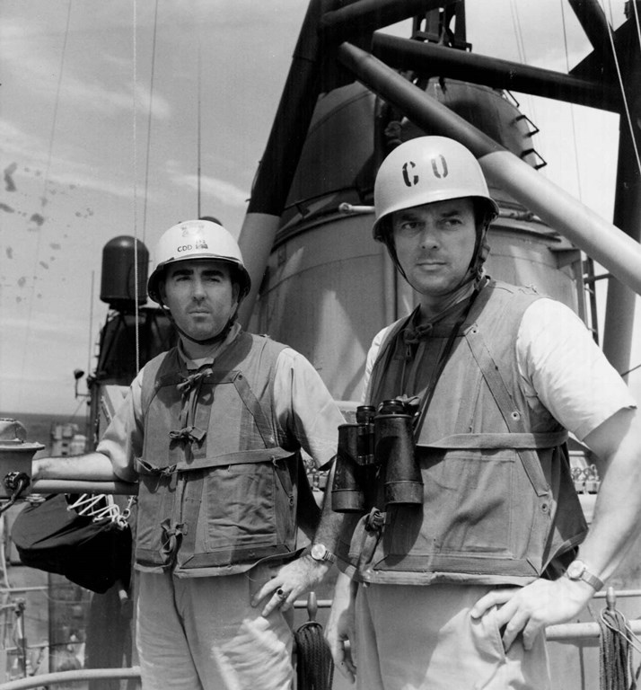 Visual sightings like this happened throughout the incident regarding varying subjects, with at least 15 other Sailors, Naval Aviators, and Marines making such reports. Among those of note were seven reports of a searchlight that appeared in the vicinity of a contact deemed sunk (evaluated as being a potential rescue effort or recall light for the boats) and five reports of direct sightings of the boats’ silhouettes, illuminated by star shells fired from Maddox. Reports from aircraft varied, with some like Commander George H. Edmondson and Lieutenant Jere A. Burton having seen what they evaluated as gun flashes from the water and a “snaky” wake over a mile ahead of Maddox, even claiming to have received light anti-aircraft bursts at their altitude. Others, like Commander James B. Stockdale saw “nothing but black sea and American firepower.”