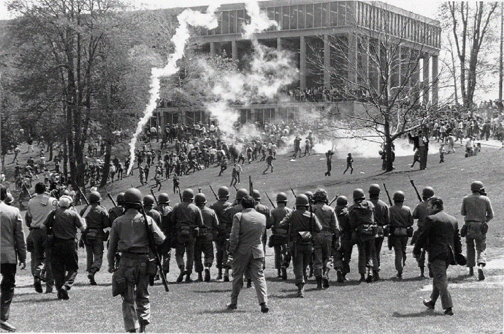 Antiwar demonstrations erupt on over 400 college and university campuses across the United States in the wake of the Cambodian incursion. Amid protests on the campus of Kent State University in Ohio, National Guardsmen fire at students. Four students are killed and nine are wounded.