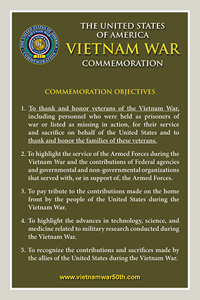 The 2008 National Defense Authorization Act authorized the Secretary of Defense to conduct a program to commemorate the 50th anniversary of the Vietnam War and "in conducting the commemorative program, the Secretary shall coordinate, support, and facilitate other programs and activities of the Federal Government, State and local governments, and other persons and organizations in commemoration of the Vietnam War."
