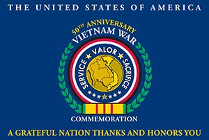 The seal’s blue background is the same color as the canton in the United States Flag. When placed next to the flags of World War II and the Korean War Commemorative Flags, the Vietnam War Commemorative Flag will signify the Vietnam Veterans taking their rightful place among generations of U.S. veterans.