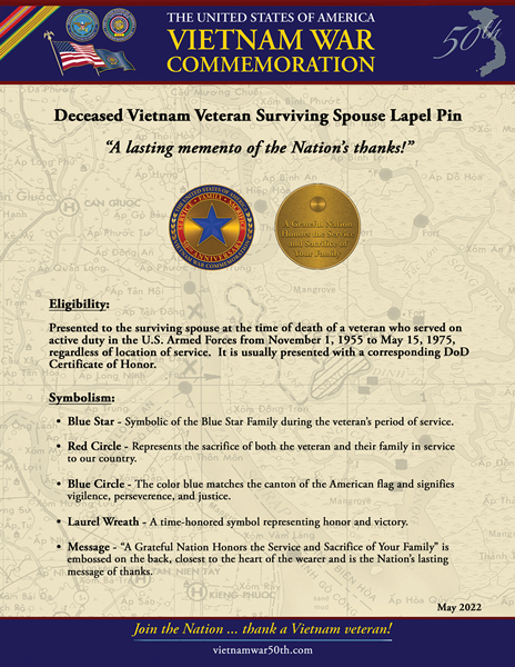 Deceased Vietnam Veteran Surviving Spouse Lapel Pin Fact Sheet