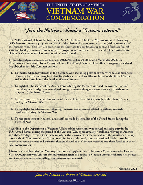 Vietnam Veteran Lapel Pin Fact Sheet