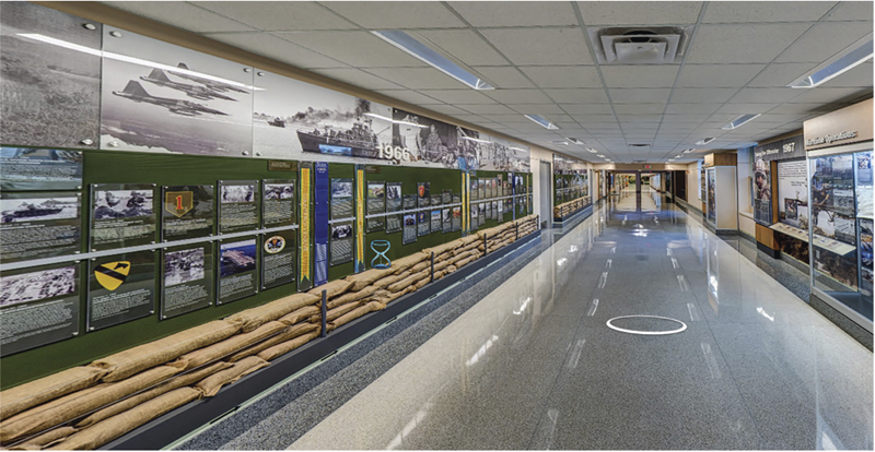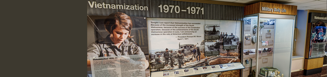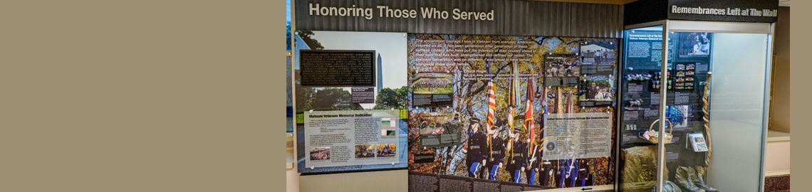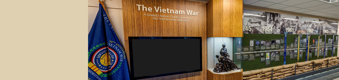 To commemorate the 50th Anniversary of the Vietnam War, the Department of Defense and the United States of America Vietnam War Commemoration created a permanent exhibit on the 3rd Floor, A-Ring, corridors 3-2 in the Pentagon as a way to thank and honor the service and sacrifice of Vietnam veterans and their families. This award-winning exhibit tells the story of the United States' involvement in the Vietnam War through a timeline of events, artifacts, historic photographs, and video footage.