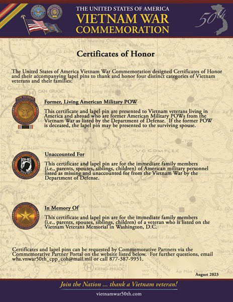 For further information, email us at: whs.vnwar50th_cpp_coh@mail.mil.