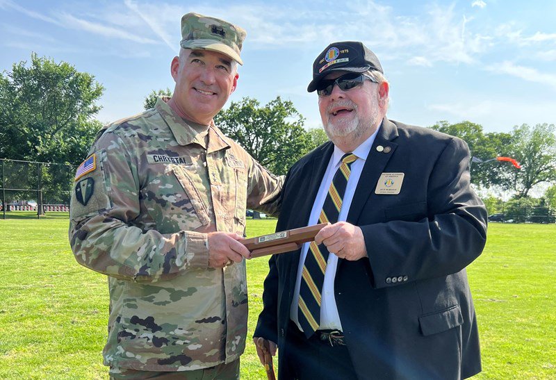 VWC Director, U.S. Army Maj. Gen. Edward Chrystal, Jr., (center) and VWC History and Legacy Chief, Mr. Mark Franklin (far right), with AVVBA members (from l-r): AVVBA Foundation Chairman of the Board,