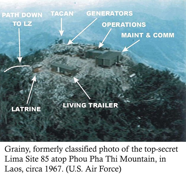 Photo of formerly classified top-secret photo of Lima Site 85 atop Phou Pha Thi Mountain in Laos,1967. Week of