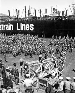 Dockside ceremonies in Da Nang as the first U.S. Marine Corps units to depart Vietnam board the USS Paul Revere for transport to Okinawa, circa late 1969. (Texas Tech University Vietnam Center and Archive)
