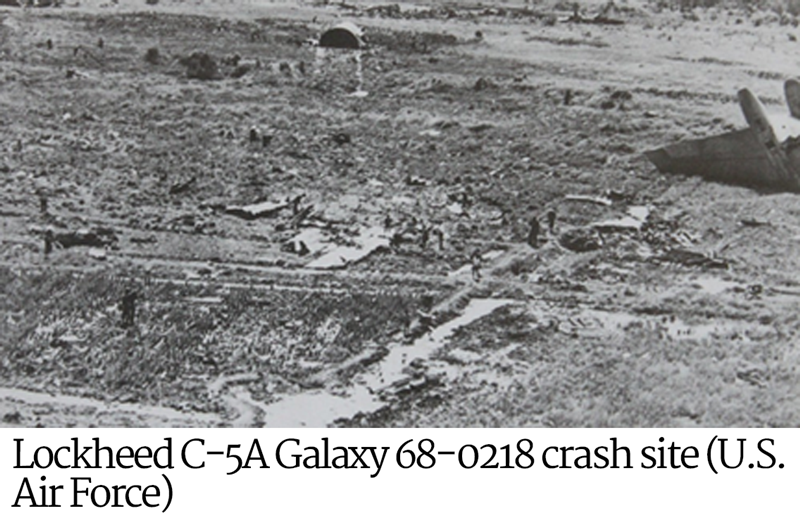 USAF-C5On the morning of April 4, a U.S. Air Force (USAF) crew from the 22d Military Airlift Squadron, 60th Military Airlift Wing, Military Airlift Command (MAC), flying a Lockheed C-5A Galaxy, Serial Number 68-218, delivered a shipment of
