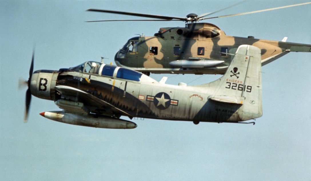 A-1 Skyraider like the one flown by Captain Draeger. During the Vietnam War, Skyraiders' abililty to fly slow and carry heavy armaments made it an excellent ground attack aircraft.