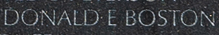 Engraved name on The Wall of Lieutenant (junior grade) Daniel McCarthy Mann, U.S. Navy.  Engraved name on The Wall of Petty Officer Third Class Donald Earl Boston, U.S. Navy.