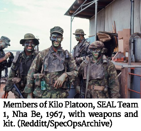 Photo of members of Kilo Platoon, SEAL Team 1, Nha Be, 1967, with weapons and kit. (Redditt/SpecOpsArchive)