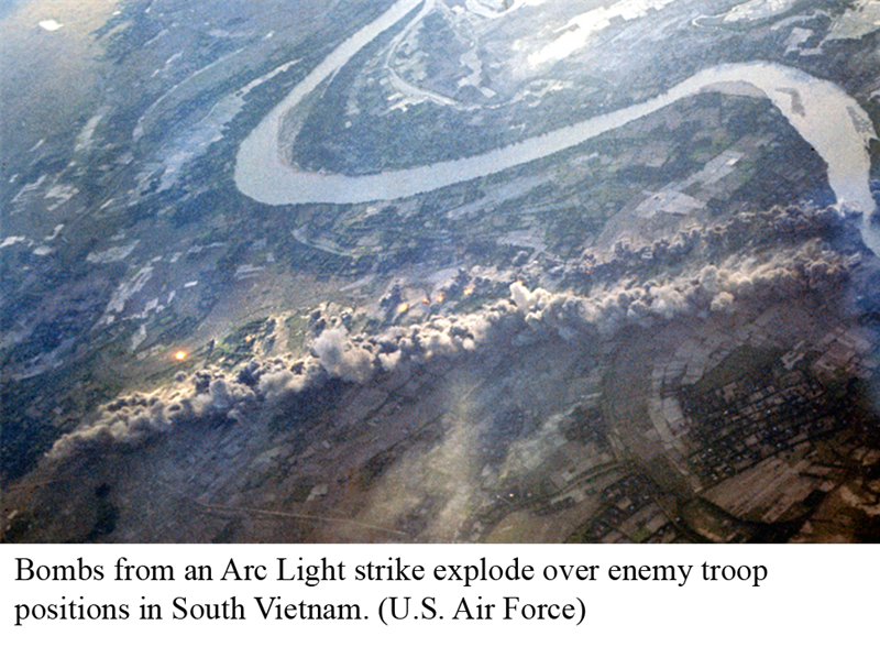 MACV hoped to use B-52s in more ways than as a strategic bomber against targets in North Vietnam. It also envisioned using the Stratofortresses for air support of ground forces in South Vietnam. Most observers did not initially think there were many appropriate targets for high altitude strategic bombing strikes in the South. But as early as 1965, MACV began to ask for B-52s to bomb the Ho Chi Minh Trail in Laos and Cambodia, and to serve as antipersonnel air support for ground troops in South Vietnam. Sorties in South Vietnam were codenamed “Arc Light” strikes.