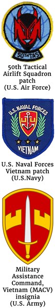 Coombination of the 50th Tactical Airlift Squadron patch, the U.S. Naval Forces Vietnam patch and the Military Assistance Command, Vietnam (MACV) insignia  U.S. Air Force aircrew of the 50th TAS C-130: