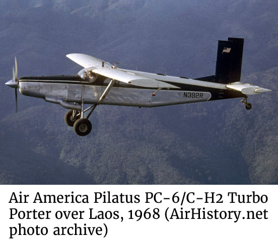 Photo of an Air America Pilatus PC-6/C-H2 Turbo Porter over Laos, 1968 (AirHistory.net photo archive)