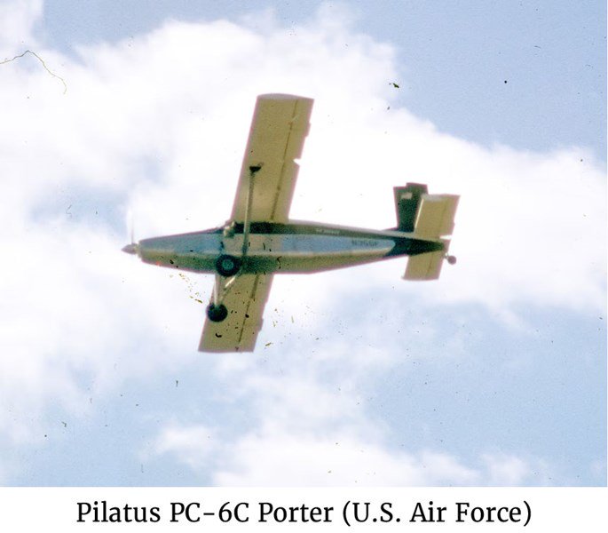 Photo of a Pilatus PC-6C Porter (U.S. Air Force)One of the most notable Air America aircraft was the versatile Pilatus PC-6C Porter. Manufactured in Switzerland, it has been described as having “proven itself to be a flying version of the Swiss Army knife: a multipurpose tool that fits a dazzling variety of uses.” Known as the Turbo Porter, the PC-6C was a STOL (short takeoff and landing) aircraft with “a reversible turboprop, allowing it to operate on very short and austere landing fields,” which was especially useful in the diverse and often unforgiving terrain of northern Laos. It was also remarkably resilient (see wreckage photos).