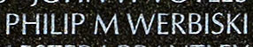 Engraved name on The Wall of Major Philip M. Werbiski, U.S. Army  Engraved name on The Wall of Captain Robert Melvin Nelson, U.S. Army