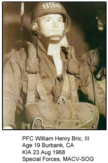 General Orders 1600, Headquarters, 5th Special Forces Group (Airborne), 1st Special Forces, Department of the Army, to Private First Class (E3) William H. Bric, 12 September 1968, Award of the Bronze Star Medal for Heroism.