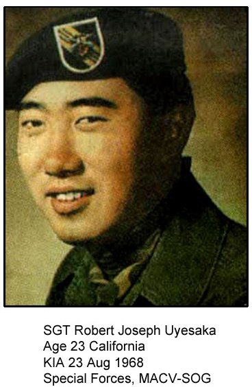 General Orders 1602, Headquarters, 5th Special Forces Group (Airborne), 1st Special Forces, Department of the Army, to Sergeant (E5) Robert J. Uyesaka, 12 September 1968, Award of the Bronze Star Medal for Heroism.