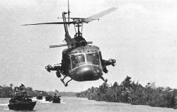 In August of 1966 Naval aviators of Helicopter Combat Support Squadron One (HC-1) began flying UH-1 “Huey” helicopters in III Corps and IV Corps over the twisting waterways of the Đồng bằng Sông Cửu Long (Mekong River delta), replacing U.S. Army flight crews. From heavily armed gunships, they provided Navy Riverine Task Force 116 in Operation GAME WARDEN with reconnaissance, fire support, and medevac services. They transported Navy SEALs and supported covert operations.