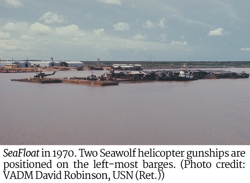 SeafloatSeaFloat was a floating command post that was constructed on barges and located in the Mekong Delta. It anchored at the confluence of the Cua Lon River and the Cai Nhap Canal, where the United States Navy launched its swiftboats, river patrols, and SEAL operations. During Vietnamization, SeaFloat was also used to support South Vietnamese forces in the area.
