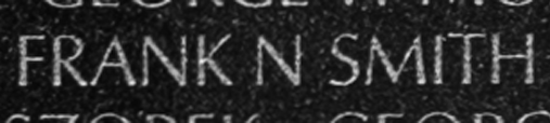 Private First Class Frank Norman Smith's name inscribed on The Wall.