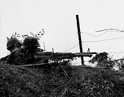 U.S. Marines of G Company, 2d Battalion, 9th Marines hold a defensive position during Operation HARVEST MOON, December 12, 1965. (U.S. Marine Corps History Division)