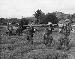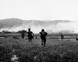 Under fire, U.S. Marines attack Communist forces during Operation HARVEST MOON. (U.S. Marine Corps History Division)