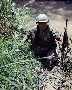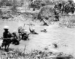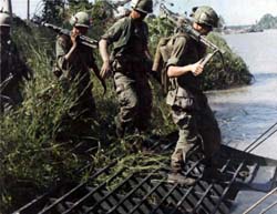General Westmoreland created a composite division, designated “Z” Division, to operate in the northern Delta below Sài Gòn. The group included the 9th Infantry Division, and perhaps its most novel feature was its Mobile Riverine Force, which tasked Navy transport and assault vessels with carrying troops from the 9th Infantry Division in amphibious search and destroy operations throughout the area. Troops slogged through terrain dotted with rice paddies, canals, and rivers, facing a climate conducive to infection and natural threats such as poisonous snakes and malaria-transmitting mosquitos.