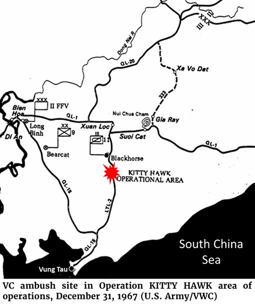 Map of the VC ambush site in Operation KITTY HAWK area of operations, December 31, 1967 (U.S. Army/VWC)