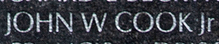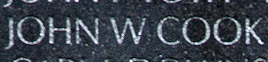 Engraved name on The Wall of Specialist Four John William Cook, Jr., U.S. Army  Engraved name on The Wall of Warrant Officer John W. Cook, U.S. Army