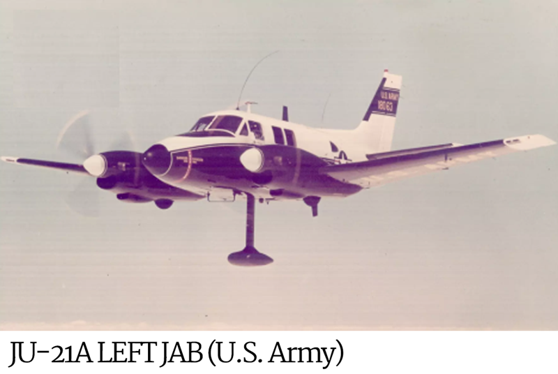 JU-21a Left JabIn 1971, ASA completed development of a brand new modified twin-engine turboprop Beechcraft U-21 Ute utility aircraft named JU-21A, and assigned the only three in existence to the 138th Aviation Company. These aircraft carried the world’s most sophisticated SIGINT collection system.