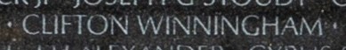 Photo of Gereau's name inscribed on The Wall.  Photo of Emmett's name inscribed on The Wall.  Photo of Winninghams' name inscribed on The Wall.