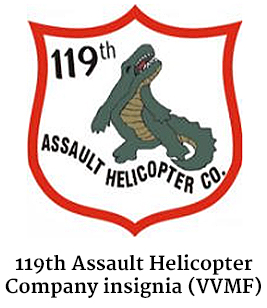 119th Assault Helicopter Company insignia (VVMF)SUMMARY: At 2:00 a.m. on February 7, 1965, two small, heavily armed Viet Cong (VC) assault teams from 30th Company, 409th VC Battalion penetrated the defenses at Camp Holloway, the U.S. Army 52d Aviation Battalion headquarters near Pleiku in the central highlands of South Vietnam. One team placed demolition charges on parked aircraft, while the other prepared to attack the sleeping Americans. When the charges were detonated, the second team mortared the billets and opened fire on men trying to escape the ensuing flames. The enemy sappers were in and out in less than 20 minutes. Seven U.S. Soldiers were killed in the attack, and more than 100 were injured, two died later of their wounds. The VC suffered no losses.