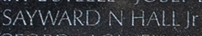 Engraved name on The Wall of Major Sayward Newton "Pete" Hall, Jr..  Engraved name on The Wall of Captain George Markos.