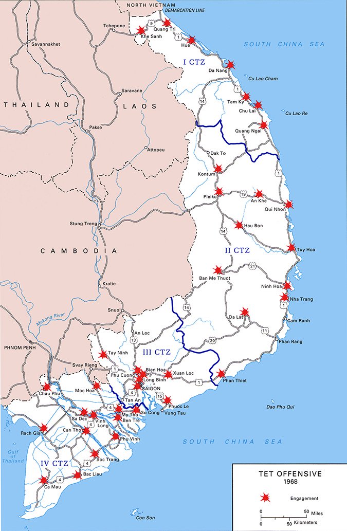 1Graham A. Cosmas, United States Army in Vietnam: MACV: The Joint Command in the Years of Withdrawal, 1968–1973 (Washington, D.C.: Center of Military History, 2006), 36–37, 58–60, 71, 84–85, 102–4, 124, 226; George C. Herring, America’s Longest War: The United States and Vietnam, 1950–1975 (4th edition; New York and other cities: McGraw Hill, 2002), 225–51; Spencer C. Tucker, ed., The Encyclopedia of the Vietnam War: A Political, Social, and Military History (2nd edition; Santa Barbara, CA: ABC-CLIO, 2011), 876–77, 1102–7; Jack Shulimson, et. al., U.S. Marines in Vietnam: The Defining Year, 1968 (Washington, D.C.: U.S. Marine Corps History and Museums Division, 1997), 164–223; William M. Hammond, United States Army in Vietnam: Public Affairs: The Military and the Media, 1968–1973 (Washington, D.C.: Center of Military History, 1996), 9–10, 155, 225; Spurgeon Neel, Vietnam Studies: Medical Support of the U.S. Army in Vietnam, 1965–1970 (Washington, D.C.: Center of Military History, 1991), 71–72.