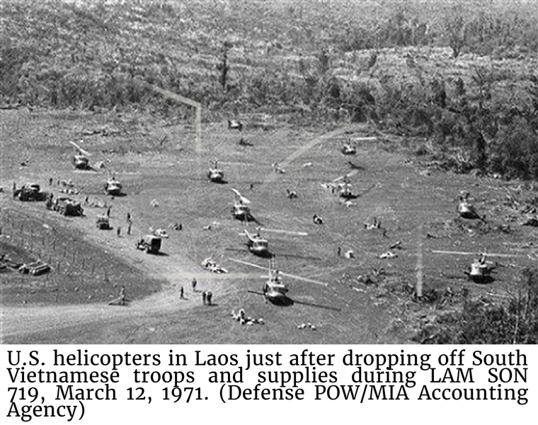 In 1971, American combat forces were rapidly leaving South Vietnam, and President Richard M. Nixon was eager to show the American people that his plan to hand the fighting of the war over to the South Vietnamese was going well. South Vietnamese and American leaders thus planned a bold largescale invasion of Laos for February of 1971, hoping to sever the Ho Chi Minh Trail once and for all. The operation featured an invasion force made up solely of South Vietnamese ground troops, assisted by Americans only in the form of advice and air support. It was named LAM SON 719. The plan called for 17,000 South Vietnamese troops to attack into Laos, both on the ground and from the air. Once in Laos, the South Vietnamese would be beyond help from American ground forces.U.S. helicopters in Laos just after dropping off South Vietnamese troops and supplies during LAM SON 719.