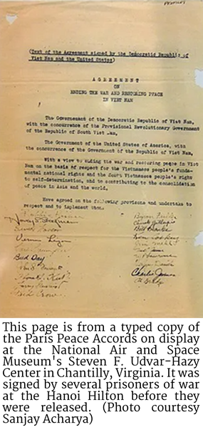 paris peace accordsFULL STORY: On January 27, 1973, the United States, the Republic of Vietnam (South Vietnam), the Democratic Republic of Vietnam (North Vietnam), and the Provisional Revolutionary Government of the Republic of South Vietnam (Viet Cong) signed an "Agreement on Ending the War and Restoring Peace in Vietnam." This agreement was also known as the Paris Peace Accords. Negotiators had been at the table on and off for four years trying to hammer out a satisfactory arrangement for the cessation of hostilities in Vietnam. By the summer of 1972, following North Vietnam’s Easter Offensive, American negotiators were under a great deal of political pressure to bring all Americans home from the war as soon as possible. President Richard M. Nixon was committed to leaving the South Vietnamese in the best possible position militarily. A few days before the final accords were signed, Nixon described the impending agreement as “peace with honor.”