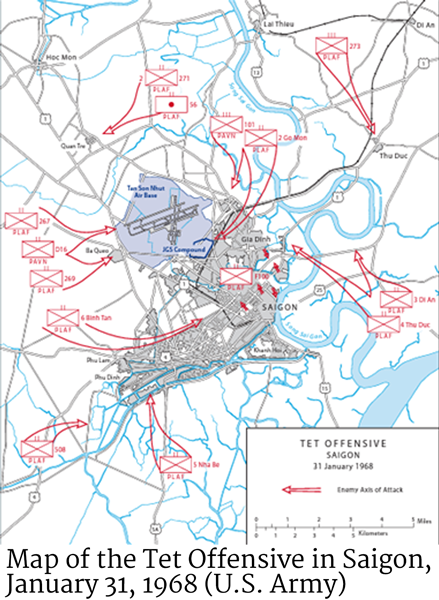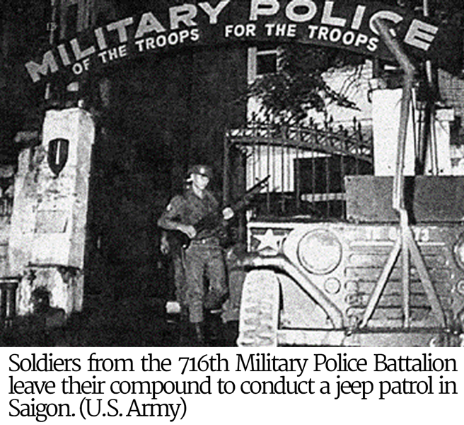 1 Erik Villard, United States Army in Vietnam, Combat Operations: Staying the Course, October 1967 to September 1968, Center of Military History United States Army, 2017; Rod Paschall, “Tet: Circling the Wagons in Saigon,” Historynet, January 4, 2013 (accessed January 28, 2023); William A. Oberholtzer, “Looking Back in History: The Battle of Saigon Forty Years Ago,” Military Police, Spring 2008; Operational Report - Lessons Learned, Headquarters, 716th Military Police Battalion, Period Ending 31 January 1968, Appendix: Special Report of ORLL During Combat Conditions - City of Saigon, 31 January to 04 February 1968; “Wall of Faces,” Vietnam Veterans Memorial Fund, (accessed January 19, 2023); “The Virtual Wall,” Vietnam Veterans Memorial Wall (accessed January 19, 2023); Coffelt Database of Vietnam Casualties (accessed January 28, 2023)