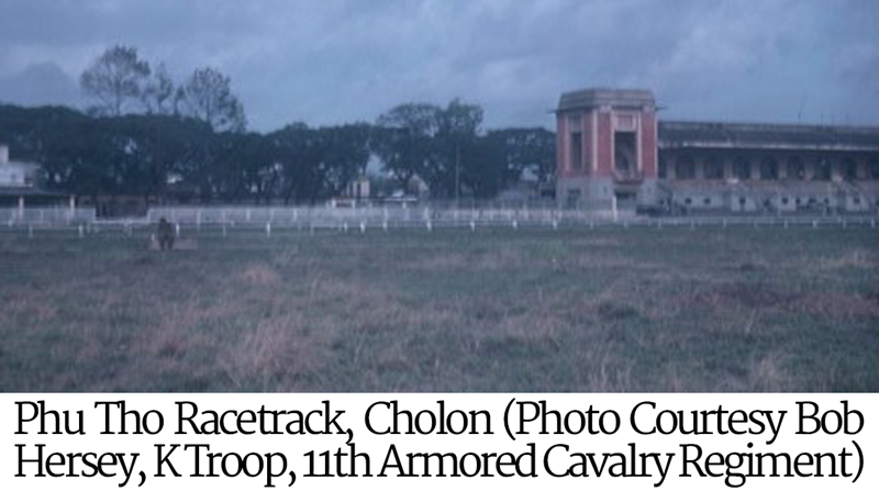 Tan Son Nhut in Cholon. Phu Tho was a horse racing venue with a large oval dirt track and a three-story concrete viewing stadium. The 6th Binh Tan Battalion intended to use it as a staging area and field hospital. They also wanted to deny landing zone access for U.S. helicopters bringing in reinforcements and supplies. Under the cover of darkness, 200 enemy soldiers and 100 civilians who had been pressed into service, slipped undetected onto the grounds of the racetrack.