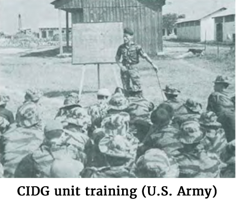 Photo of CIDG unit training (U.S. Army)By 1962, MAAGV had made significant gains. The South Vietnamese armed forces had improved dramatically and were performing more successfully in the field. MAAGV not only provided advisory and operational support to the South Vietnamese military but was also assisting the CIA with the Civilian Irregular Defense Group (CIDG) program, training and equipping indigenous ethnic minorities in counterinsurgency and irregular warfare.