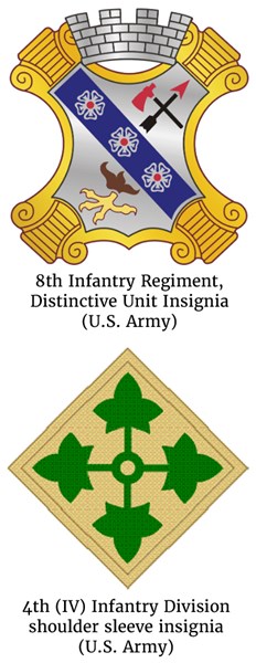 These are the 21 Americans who were killed in the battle:8th Infantry Regiment, Distinctive Unit Insignia (top) and the 4th (IV) Infantry Division shoulder sleeve insignia (bottom) (U.S. Army)