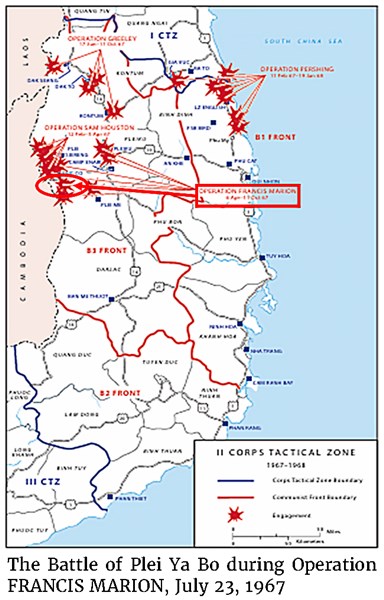 Map of The Battle of Plei Ya Bo during Operation FRANCIS MARION, July 23, 1967