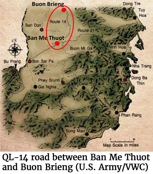 SUMMARY: On July 23, 1964, a Viet Cong (VC) battalion ambushed a four-truck convoy bringing supplies up the QL-14 road from Ban Me Thuot to the Civilian Irregular Defense Group (CIDG) camp at Buon Brieng in the Darlac Province. The enemy attacked from well laid out, dug-in positions. It was well-planned and well-executed. The sound of gunfire alerted the Special Forces A-Team at the nearby camp, who responded immediately with a CIDG quick reaction force. The rapid response broke the ambush and saved the lives of several women and children and a few of the CIDG convoy escorts. The U.S. Special Forces junior medic who was leading the convoy and 39 Montagnards were killed in the attack.