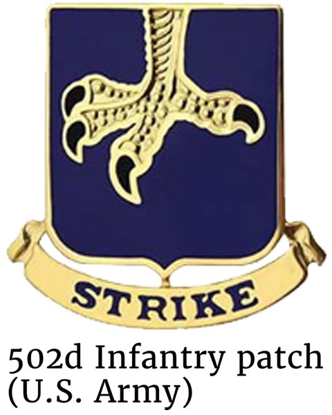 502d Infantry patch (U.S. Army)On July 8, 1969, Company A, 1/502d, 101st Airborne Division arrived at a fallow rice paddy just northeast of Hau Duc in I Corps. Having just completed a difficult search and destroy mission, they were expecting helicopter resupply at this location not far from Chu Lai. The captain ordered his 3d Platoon to recon the thick jungle underbrush surrounding the rendezvous site. Two squads moved forward, while the remaining squads set up perimeter security. The lead squad found a communications wire and traced it to a hootch. They opened fire and killed three NVA occupants before heading back down the trail.