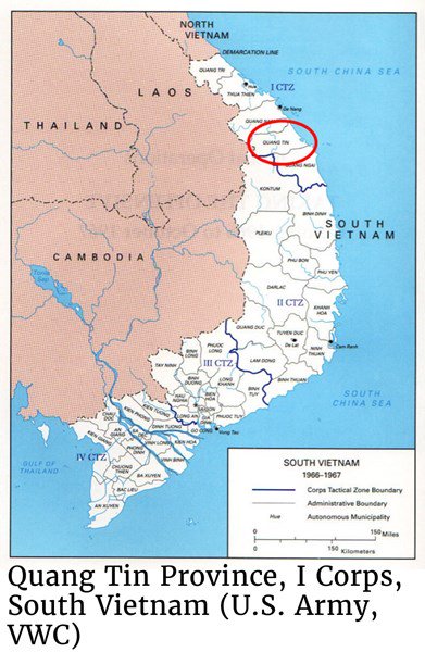 Map of Quang Tin Province, I Corps, South Vietnam (U.S. Army, VWC)In May 1969, the NVA was still highly motivated and still on the offensive. The 2d NVA Division successfully attacked and took control of a large swath of Quang Tin Province in the southern part of I Corps, part of the 23d Division (Americal) area of operations. Military Assistance Command Vietnam initiated Operation LAMAR PLAIN to secure Quang Tin Province and defeat the enemy there. The elements of the 101st Airborne Division, including three infantry battalions, an artillery division, and a cavalry troop, conducted the operation from May 15 to August 14. By July 1969, enemy-initiated contact had declined considerably, but hostile encounters remained a continuous threat.