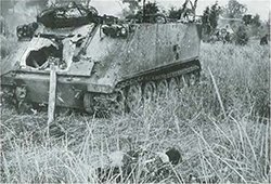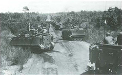 When the ambush began, tanks and armored personnel carriers immediately angled to alternate sides of the road in a herringbone formation per standard procedure. By 1230 the Việt Cộng guerrillas realized that a successful assault would be impossible and withdrew an hour later.