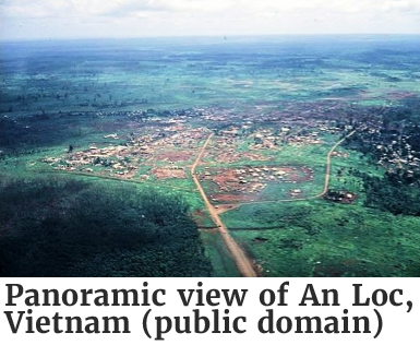 Panoramic view of An Loc, Vietnam (public domain)By June 1972, the siege of An Loc had been broken, but the danger had not yet passed. The fighting continued sporadically and North Vietnamese artillery, rocket, and mortar bombardment continued daily. The Battle of An Loc did not officially end until the third week in July.