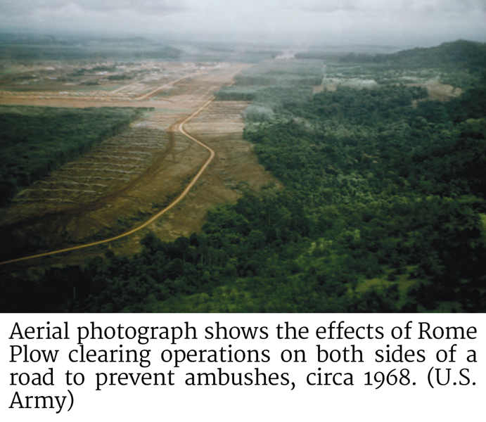 effects of rome plow clearingSUMMARY: On June 19, 1970, the men of the 984th Engineering Company, 62d Engineering Battalion, were asleep in their forward camp during the final days of the Cambodian Incursion, when they were attacked by a force of North Vietnamese troops with rockets and mortars. The 984th was on a land-clearing operation in the “Fishhook” region of Cambodia, plowing away jungle vegetation in search of enemy bunkers and underground installations. Three engineers were killed in the brief attack, with 18 wounded, in one of the deadliest attacks on an American land-clearing unit during the Vietnam War.