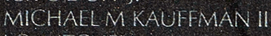Engraved name on The Wall of Sergeant Ernest Bryan Cupp, U.S. Marine Corps  Engraved name on The Wall of Hospital Corpsman Petty Officer Second Class Michael Monroe Kauffman, II, U.S. Navy