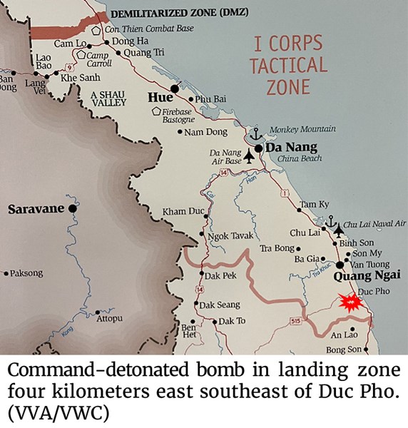 Photo of a command-detonated bomb in the landing zone four kilometers east southeast of Duc Pho. (VVA/VWC)